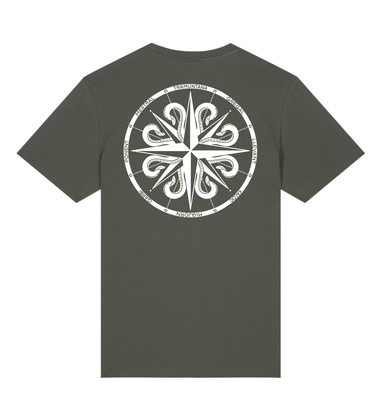 Camiseta Rosa de los vientos de tejido ecológico y serigrafía artesanal con tintas biodegradables.